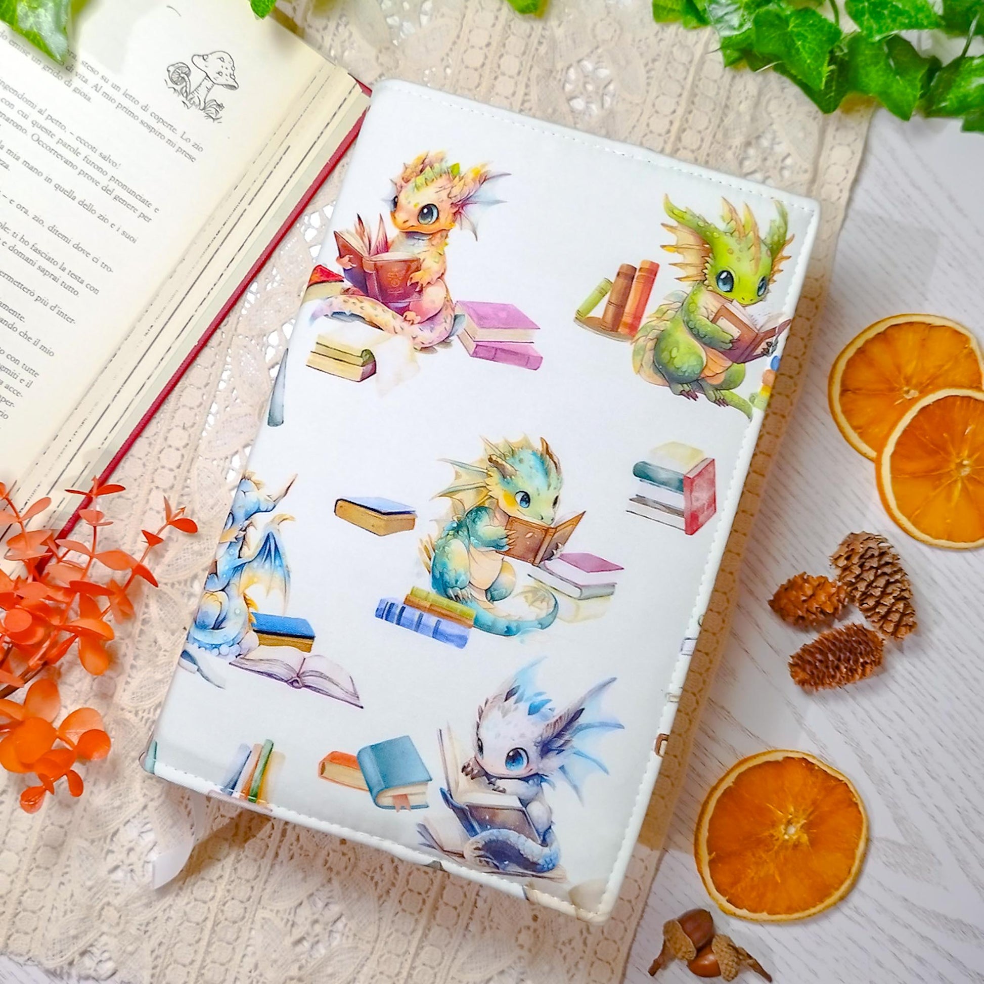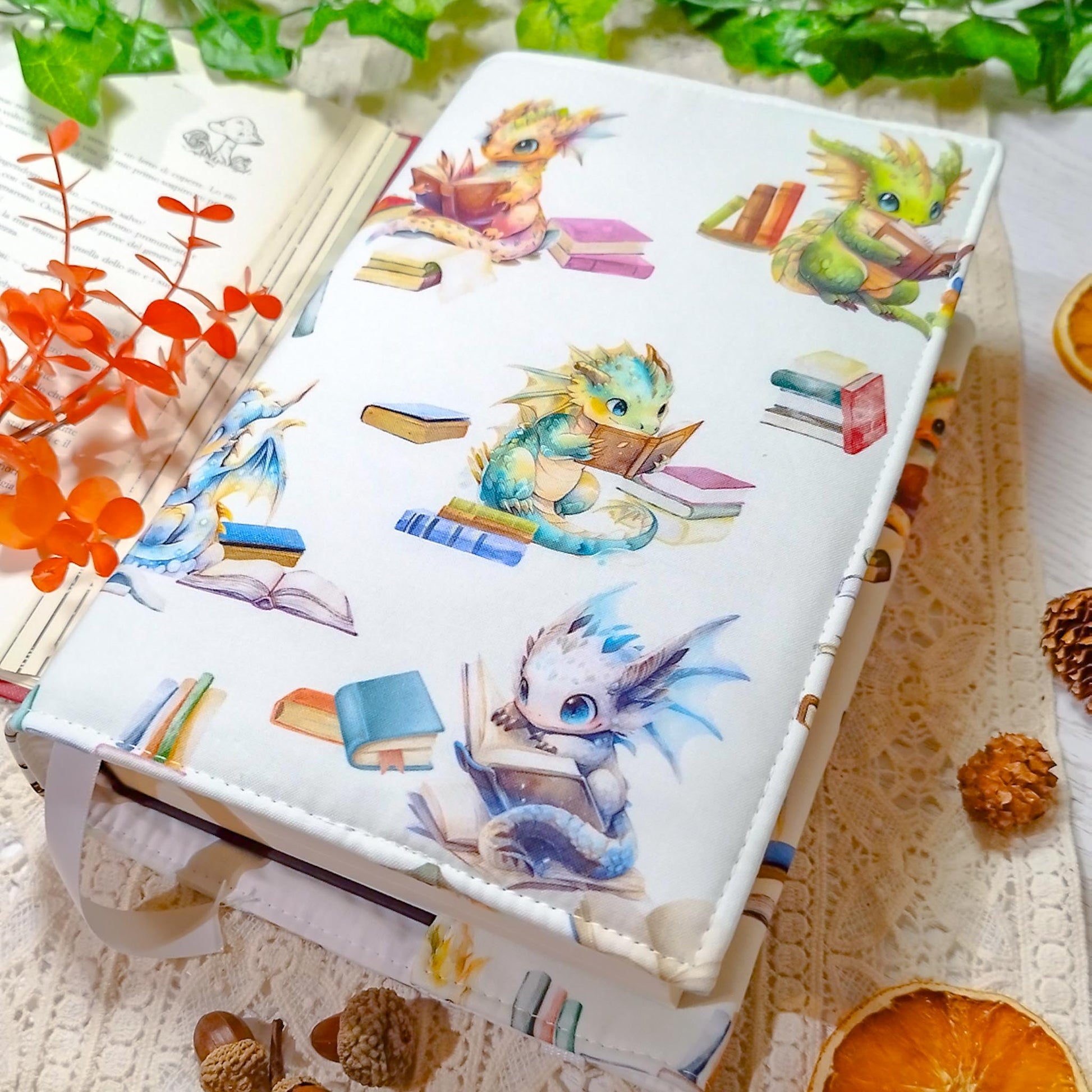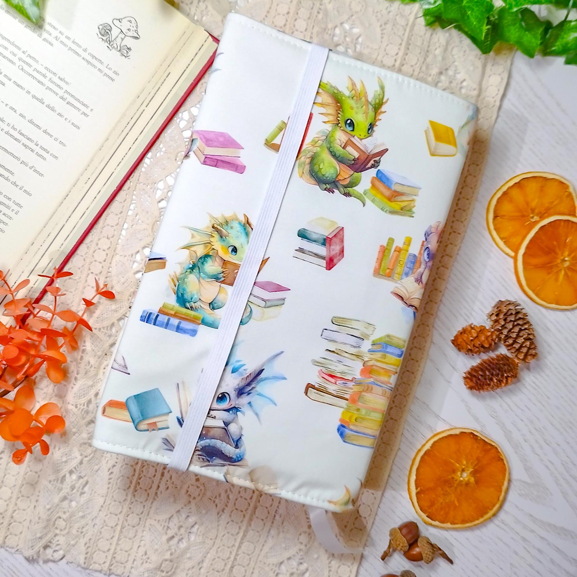 Book cover "Draghi che leggono" | Custodia per libri regolabile