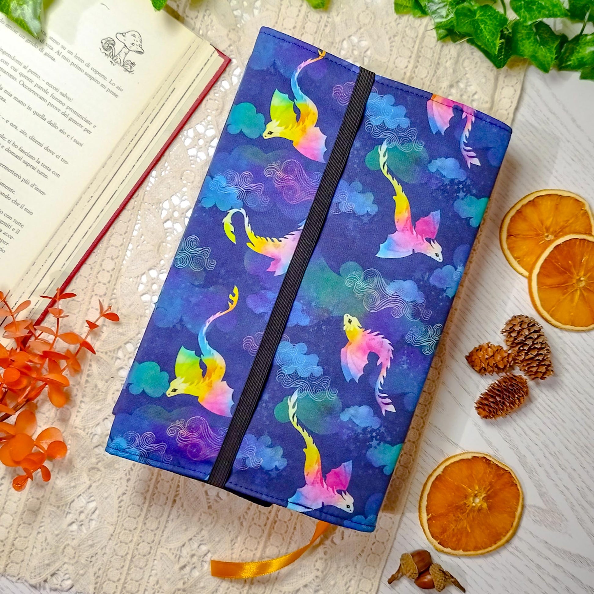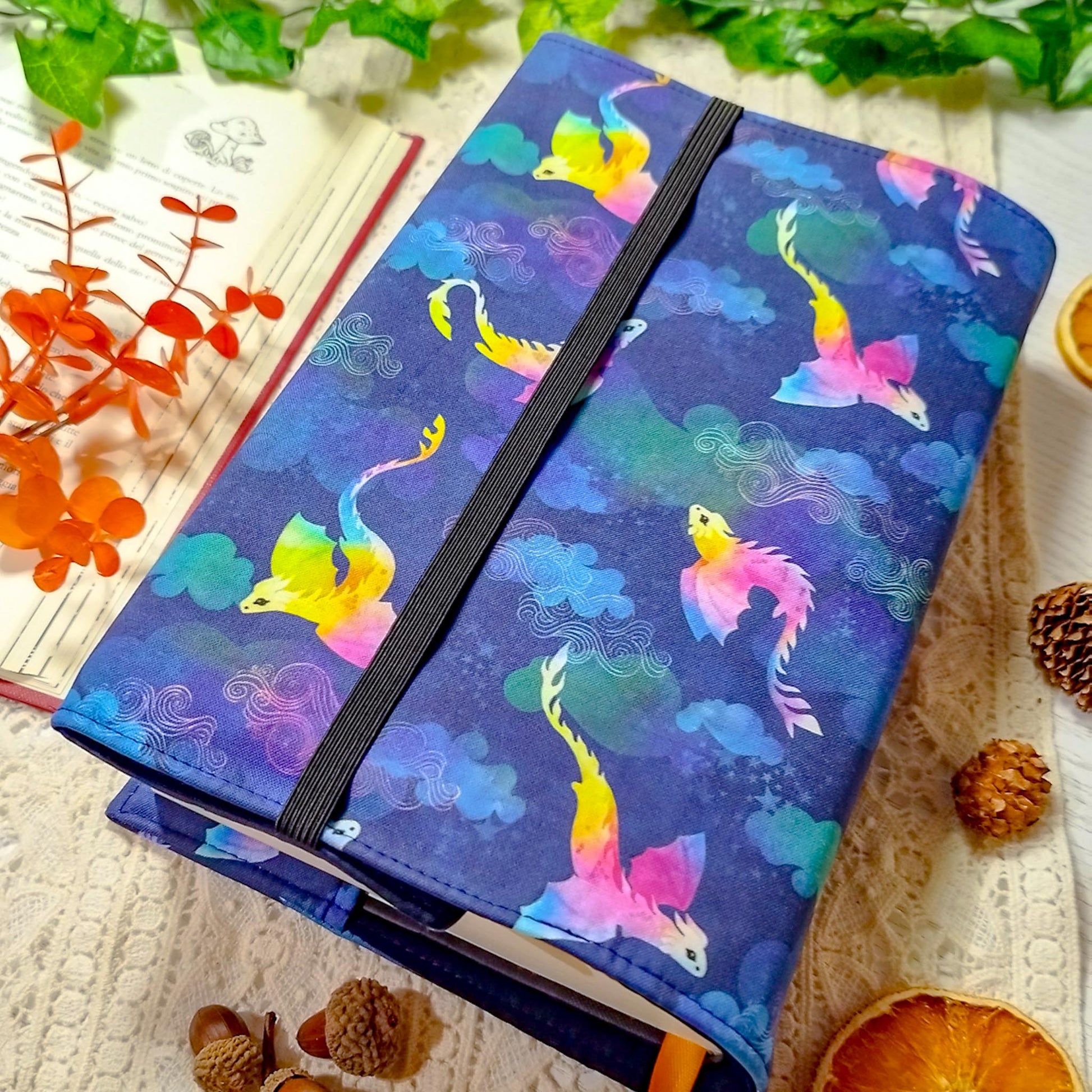 Book cover "Draghi che volano blu" | Custodia per libri regolabile