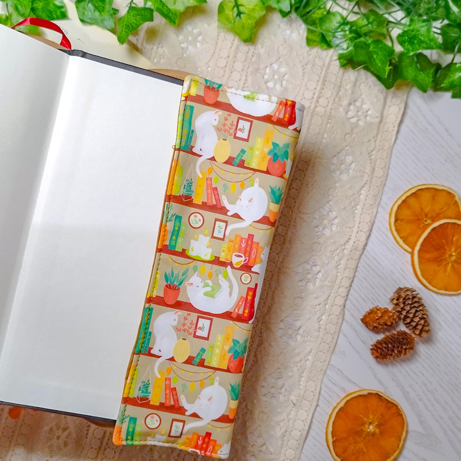 Book cover "Gatti in libreria beige" | Custodia per libri regolabile