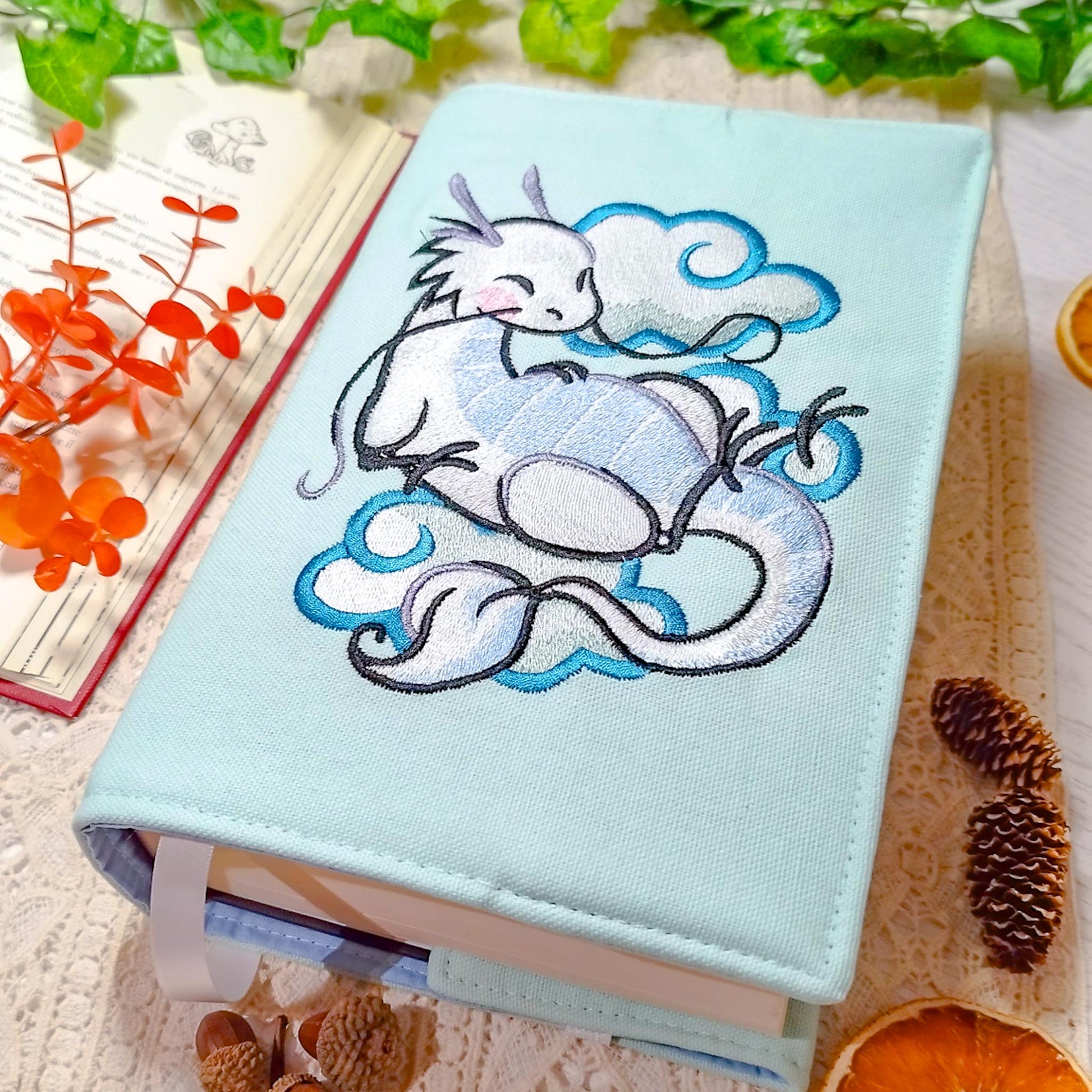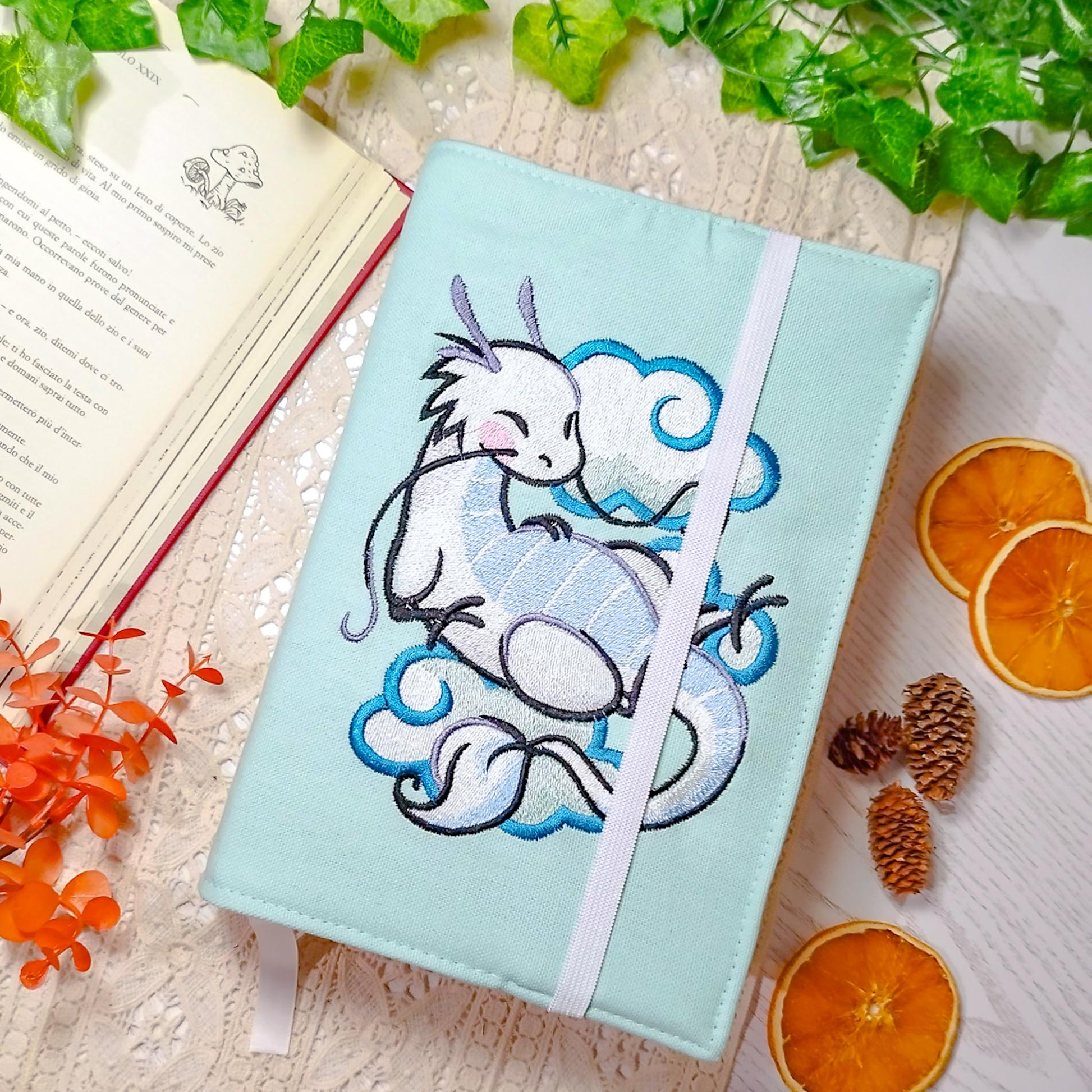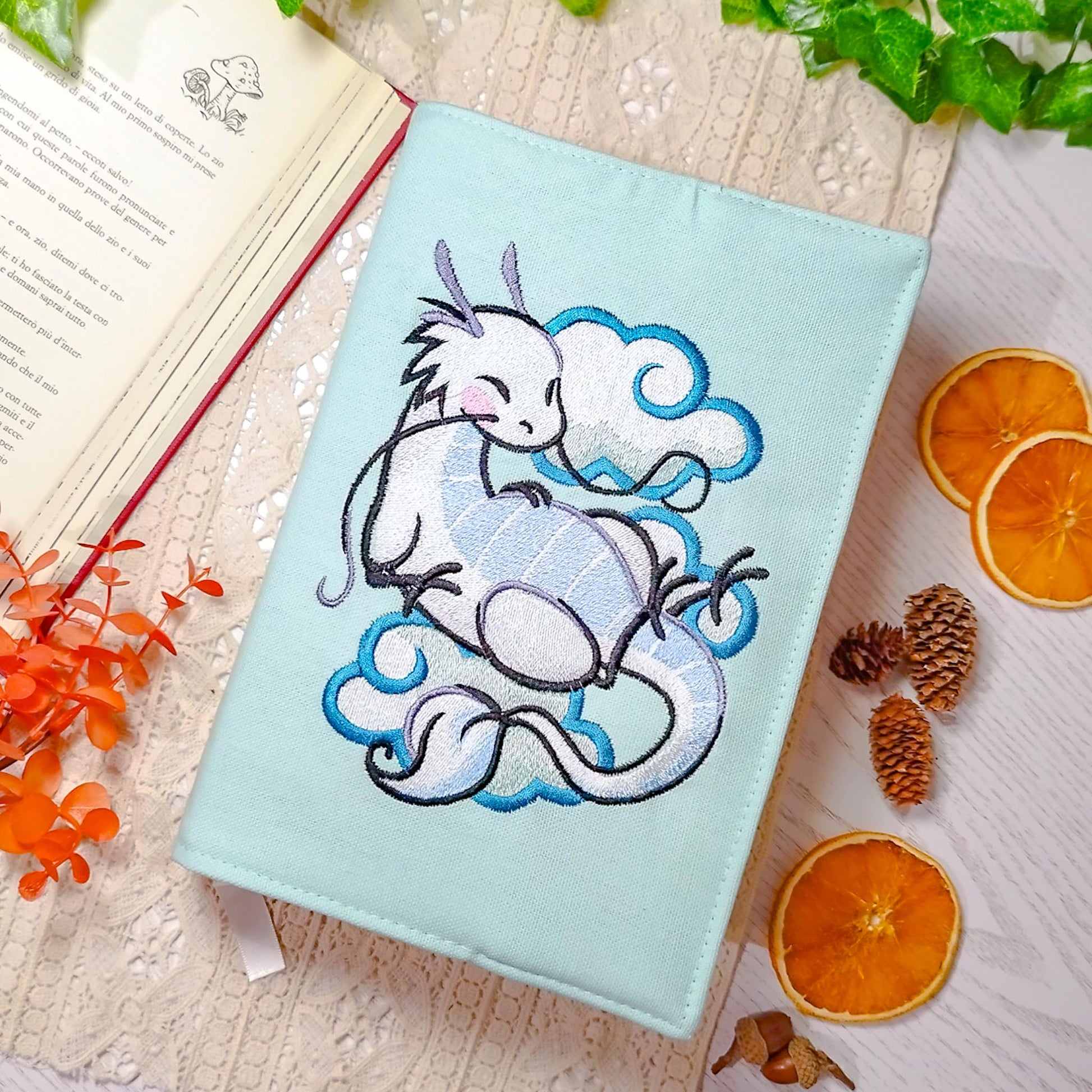 Book cover ricamata "Drago sulla nuvola" | Custodia per libri regolabile