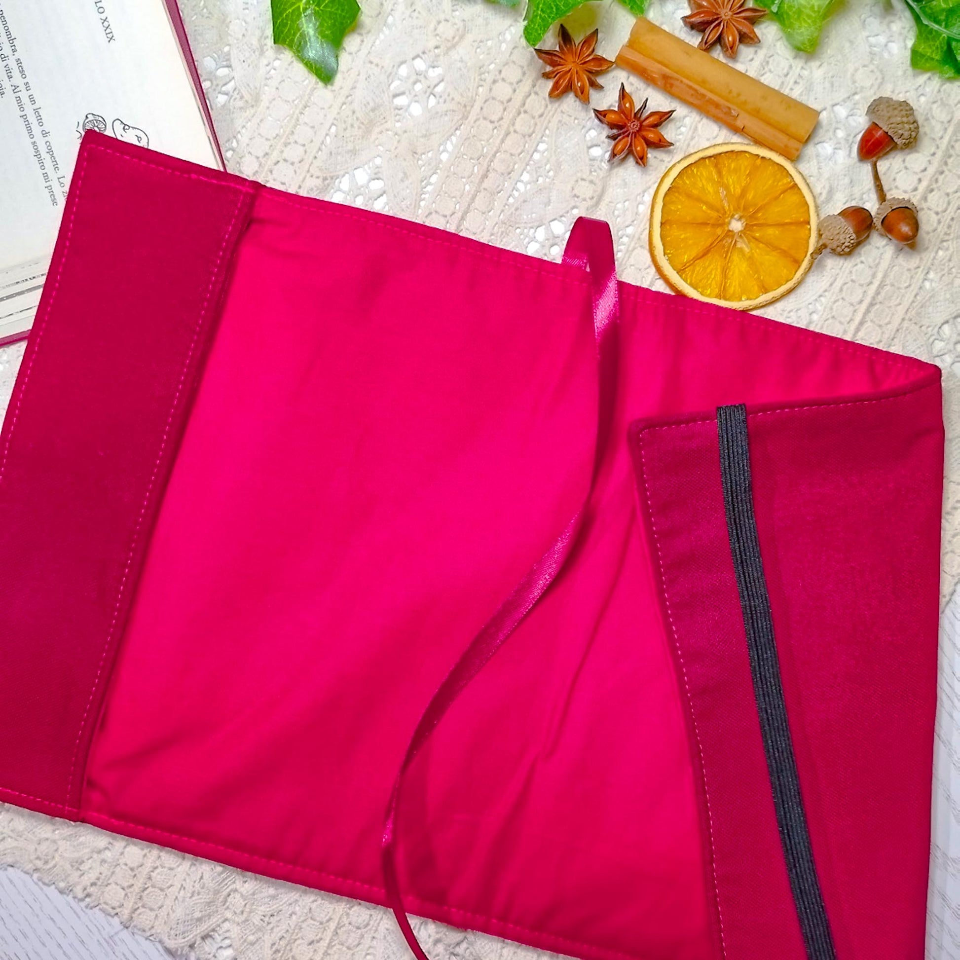 Book cover, custodia per libri e porta agenda per proteggere libri, agende e quaderni, artigianale realizzata in Italia. Si adatta alla larghezza e alla profondità del libro. Con segnalibro di colore rosso.