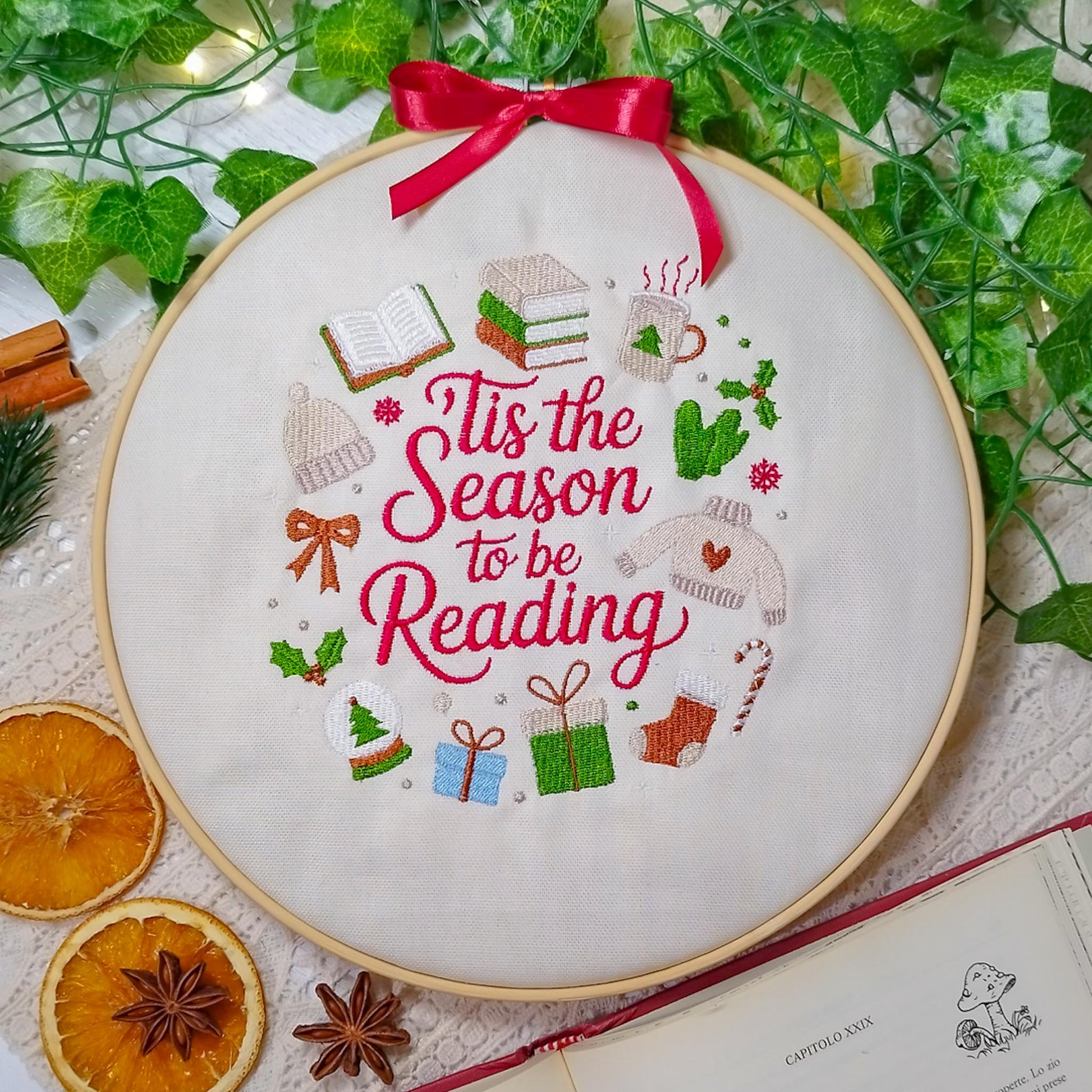 Con i nostri decori natalizi ricamati a macchina, le tue storie prenderanno vita tra abeti addobbati e profumo di biscotti. Ogni pezzo racchiude un richiamo al mondo della lettura che ami: libri, draghi, piccoli amici animali, tutti avvolti nell’incanto delle feste.